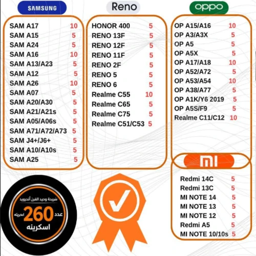 شريحة اسكرينة وحيد القرن تضم 260 اسكرينة، متوافقة مع أقوى وأشهر موديلات الموبايلات.
