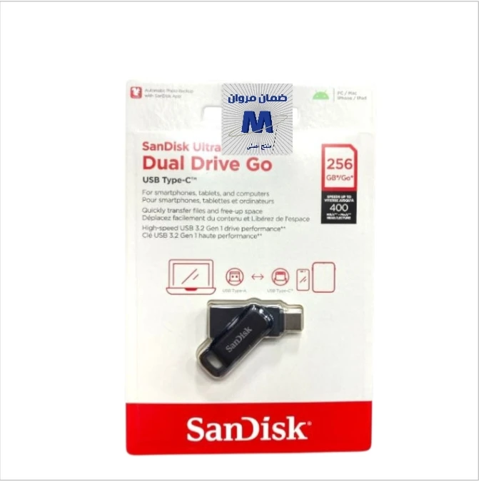 فلاش256جيجا سان ديسك تايب سي . ضمان سنه.400MB/s . USB TYPE C معدن أصلي