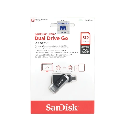 السعة: 512 جيجابايت. الموصلات: يحتوي على موصل USB Type-C قابل للعكس وموصل USB Type-A تقليدي. السرعة: يوفر أداءً عالي السرعة بواجهة USB 3.2 Gen 1، تصل سرعات القراءة إلى 150 ميجابايت/ثانية، مما يتيح نقل الملفات الكبيرة بسرعة. التوافق: متوافق مع الهواتف الذكية والأجهزة اللوحية وأجهزة الكمبيوتر التي تحتوي على منافذ USB Type-C بالإضافة إلى أجهزة الكمبيوتر المزودة بمنافذ USB Type-A. التصميم: يتميز بتصميم دوار لحماية الموصلات ويحتوي على حلقة مفاتيح مريحة لسهولة الحمل. التطبيق: يتوافق مع تطبيق SanDisk Memory Zone لنظام Android (المتوفر على Google Play) لإجراء نسخ احتياطي تلقائي للصور ومقاطع الفيديو وجهات الاتصال والمزيد. ضمان مروان سنة